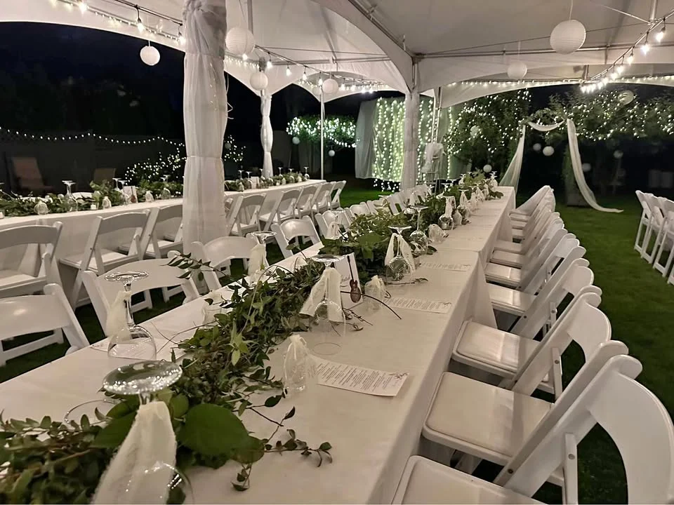 Elegant Tent and Event Rentals made our special day unforgettable! The tents were pristine, stylish, and set up with care. Their team was professional, timely, and went above and beyond to accommodate our needs. From start to finish, the experience was seamless. Highly recommend for any wedding or special event .